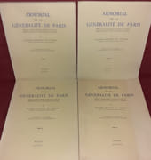 Macon, 1965-1967. 4 tomes en 4 vol. in-4 broché, XLVIII-629 pp. en continu et 233 pp. (tome 4), portrait gravure de Ch. d'Hozier h.-t., 1 planche de blasons en coul., 1 planche de fac-similé (armorial de 1896), 1 pl. en coul. de la reprod. du brevet aux armes de Gilles des Plasses, marchand drapier, bourgeois de Paris aux frontispices respectifs des 4 tomes, textes sur 2 colonnes, addenda, errata, tables onomastiques et toponomastiques in fine du Tome III pour les 3 premiers tomes, le tome IV concerne 26 villes autres que Paris, avec une numérotation particulière et une table in fine uniquement pour ce tome. Ex. non coupés.